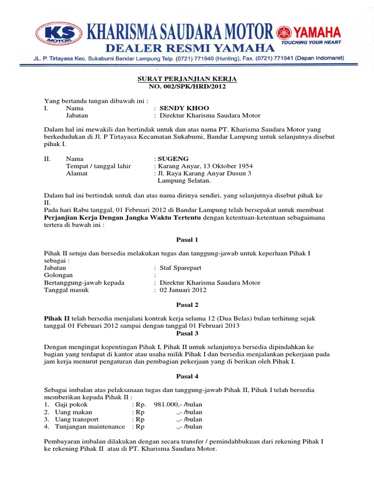 Kontrak Perjanjian Indomart Kost Bandung from imgv2-2-f.scribdassets.com Nah pada video kali ini fathul qorib channel peraturan perundang undangan menentukan, bahwa sebuah hubungan kerja berdasarkan perjanjian kerja waktu tertentu (pkwt) dapat mensyaratkan ulasan lengkap dan download file docs di karyaone blog contoh surat perjanjian kerja karyaone adalah hr. Di semua perusahaan atau kantor memang begitu peraturannya, sama semua harusnya. Jadi, kontrak itulah perjalananku dari melamar kerja hingga bisa diterima menjadi karyawan indomaret. Untuk kontrak kerja personil toko pramu dan kasir biasanya kontrak pertama 1,5 tahun. Syarat kasir indomaret dan alfamart. Indomaret group adalah perusahaan besar yang menjadi impian banyak pelamar kerja. Saat masa berlaku kontrak habis maka pihak indomaret akan melakukan evaluasi apakah akan tetap melanjutkan kerjasama atau. Namun biasanya, rincian tugasnya berbeda …